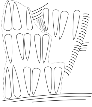 Wer also die dreizeilige Botschaft entziffern will, so es sie denn gibt, muss folglich eine Begründung dafür bieten können, warum sie ausgerechnet mit der vorliegenden Motivform spitznackiger Beilklingen zum Ausdruck gebracht wurde. Wobei zu betonen bliebe, dass in Gavrinis Motive dieser Art durchweg ungeschäftet dargestellt wurden. Als sei zur Zeit der Innendekoration des Dolmens die ursprüngliche symbolische Bedeutung vormals vermutlich mit Krummstabmotiven gepaarter Beilklingen, zuweilen auch als “Pflugbeile” oder “Beilpflüge” bezeichnet, mittlerweile obsolet gewesen.