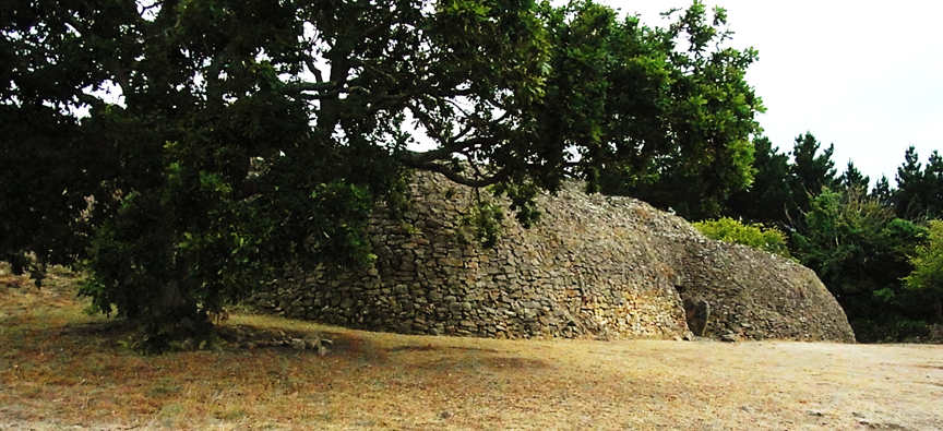 Der aus megalithischen Wand-, Boden- und Deckenplatten errichtete Gangdolmen wurde anschließend in mehreren Terrassen stufenförmig mit gewaltigen Mengen an Bruchsteinen überhäuft. Die südöstliche Seite des so entstandenen Cairns, in die der innere Gang mündet, wurde als breite, senkrechte Fassade gestaltet, ähnlich der Südostfassade von Newgrange in Irland. Der ursprüngliche Cairn maß an der Basis über 50 m im Durchmesser und ca. 6 m in der Höhe. Der innere Gang misst etwa 14 m in der Länge, die sich anschließende Kammer etwa 2,5 m.6 Gegen etwa 3400 v. Chr. wurde die Anlage aufgegeben,7 der Eingang verschlossen und alles komplett mit Erde überhügelt.8 Was den zum Cairn erweiterten Dolmen letztlich zu einem runden Tumulus machte.